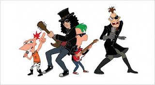 O Slash, guitarrista ícone do Guns and Roses, virou desenho animado. O cara vai aparecer no novo desenho da Disney Channel Phineas and Ferb: Across the second dimention. A animação vai ser exibida no dia 5 de agosto pelo canal americano. Durante a aparição, Slash toca Kick it up a notch, música composta especialmente para o filme. O Slash está enlouquecido em carreira solo enquanto a sua banda atual, o Velvet Revolver permanece em pausa por tempo indeterminado e sua antiga banda, o Guns, segue arrecadando milhões em turnês pelo mundo com o guitarrista Dee Jay Ashba no lugar de Slash.