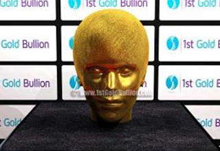 A justificativa para tanto, além do ouro, é que o trabalho de construção da peça levou 10 semanas! Primeiro o rosto teve de ser moldado em argila para depois ser preenchido com ouro derretido. Muita coisa, né?