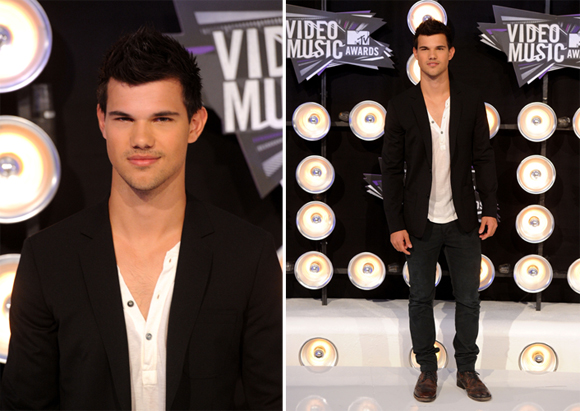 Taylor não muda muito o seu estilo de se vestir, mas sempre arranca suspiros por onde passa. De calça preta, camiseta branca e blazer, nós podemos dizer de boca cheia que ele estava lindo! Taylor não levou prêmio nenhum, e nem precisava: deu o ar de sua beleza no palco, ao lado de Selena Gomez, para entregar a estatueta do prêmio de “Artísta Revelção”. Supiros…