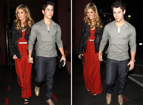 Nick Jonas acaba de passar pelo Brasil com a turnê de seu álbum solo, mas pelo jeito, ele e sua namorada, Delta Goodrem, já estão com muitas saudades. É que o casal foi jantar num restaurante de comida brasileira neste sábado (15/10).