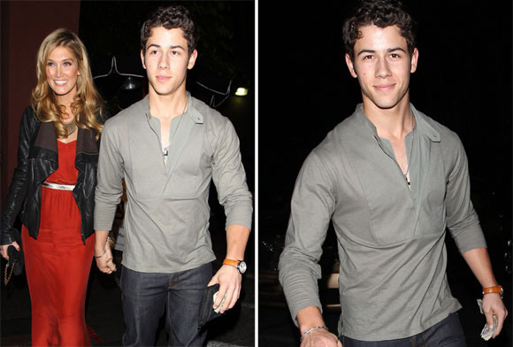 Nick Jonas acaba de passar pelo Brasil com a turnê de seu álbum solo, mas pelo jeito, ele e sua namorada, Delta Goodrem, já estão com muitas saudades. É que o casal foi jantar num restaurante de comida brasileira neste sábado (15/10).