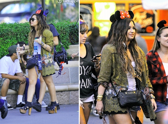 Durante a tarde de domingo (21/08), Demi e suas amigas se divertiram muito nos brinquedos e desfilaram pelo parque usando as famosas orelhinhas da Minie. Own!