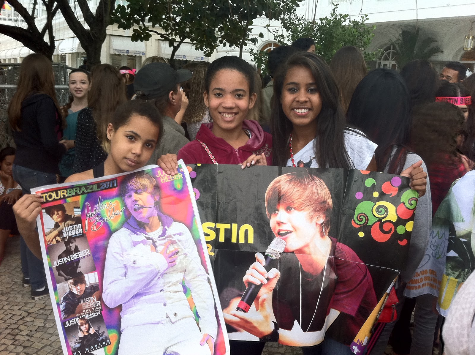 Fãn fazem de tudo mesmo para ver Justin Bieber levaram pôster cartas foram todas Bieber para velo isso para elas e um sonho que ninguém pode tirar de ver seu ídolo.